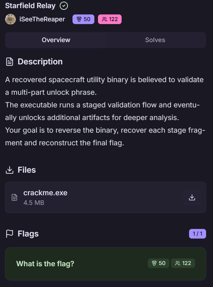 UniVsThreats26 Quals中exe逆向Starfield Relay